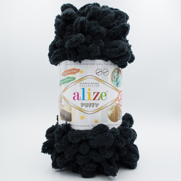 Alize Puffy este un fir unic, cu bucle mari, care se lucrează cu degetele – fără andrele sau croșetă.