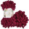 Alize Puffy este un fir unic, cu bucle mari, care se lucrează cu degetele – fără andrele sau croșetă.
