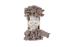 Alize Puffy este un fir unic, cu bucle mari, care se lucrează cu degetele – fără andrele sau croșetă.