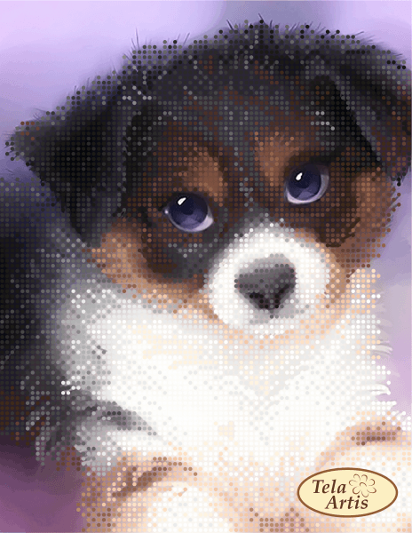 Etichete: baiat bun, Broderie cu margele, caine, Tela artis